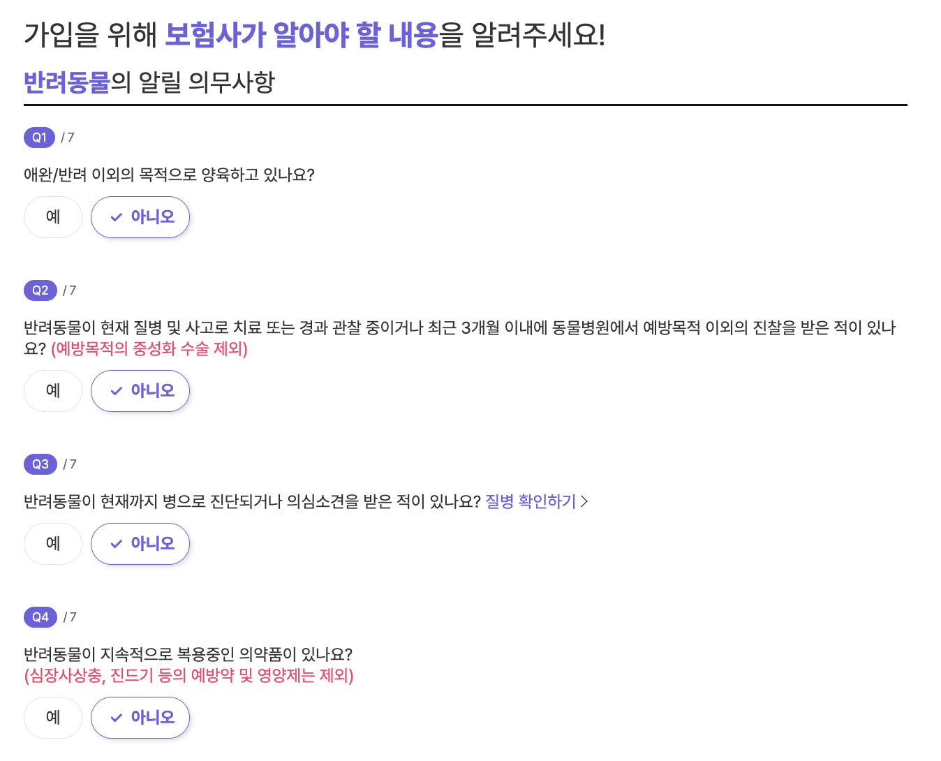 - 동물병원에 등록된 생년월일 & 품종으로 입력해야 합니다
