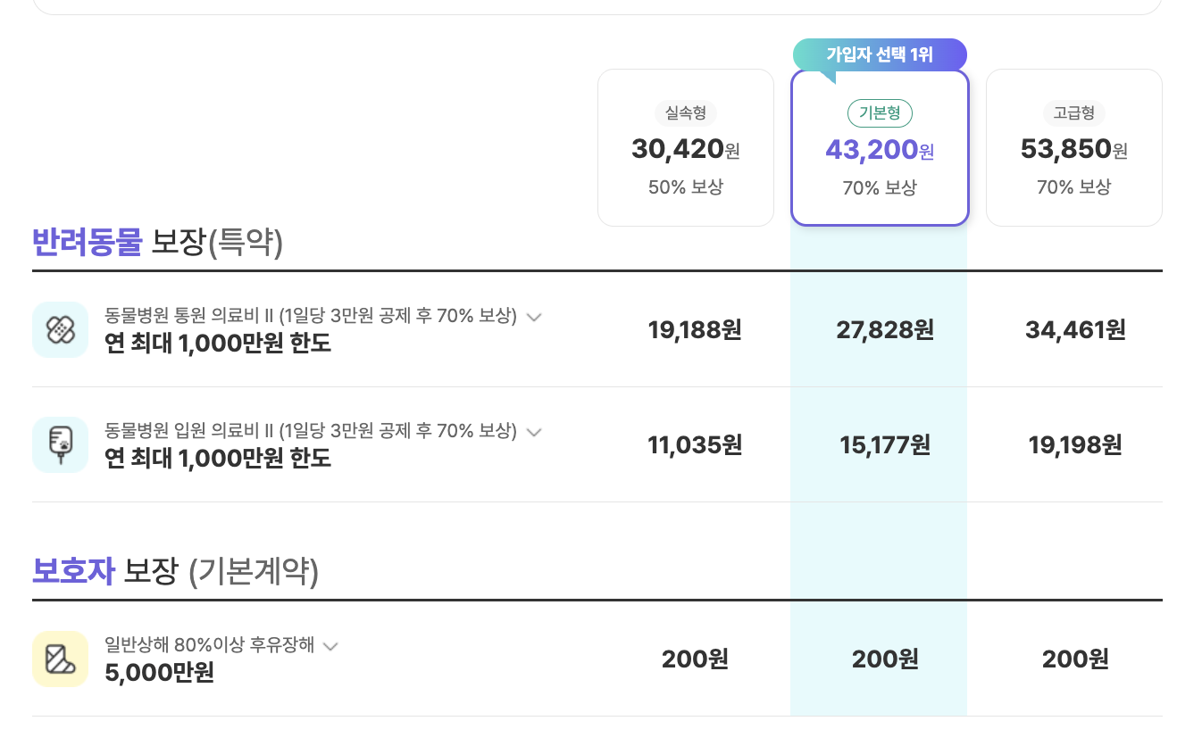 - 보장 내용 선택 (기본형/고급형)