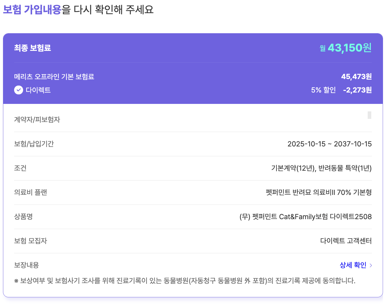 | 고양이보험, 펫퍼민트 가입비, 가입과정 알아보기 (0) | 2025.10.18 |