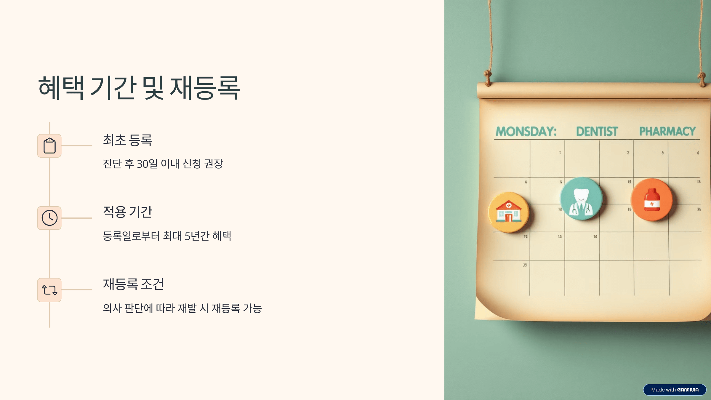 시기를 놓치면 등록이 거절되거나, 본인부담 경감 혜택을 받지 못할 수 있기 때문에 진단 즉시 신청 절차를 밟는 것이 핵심입니다.