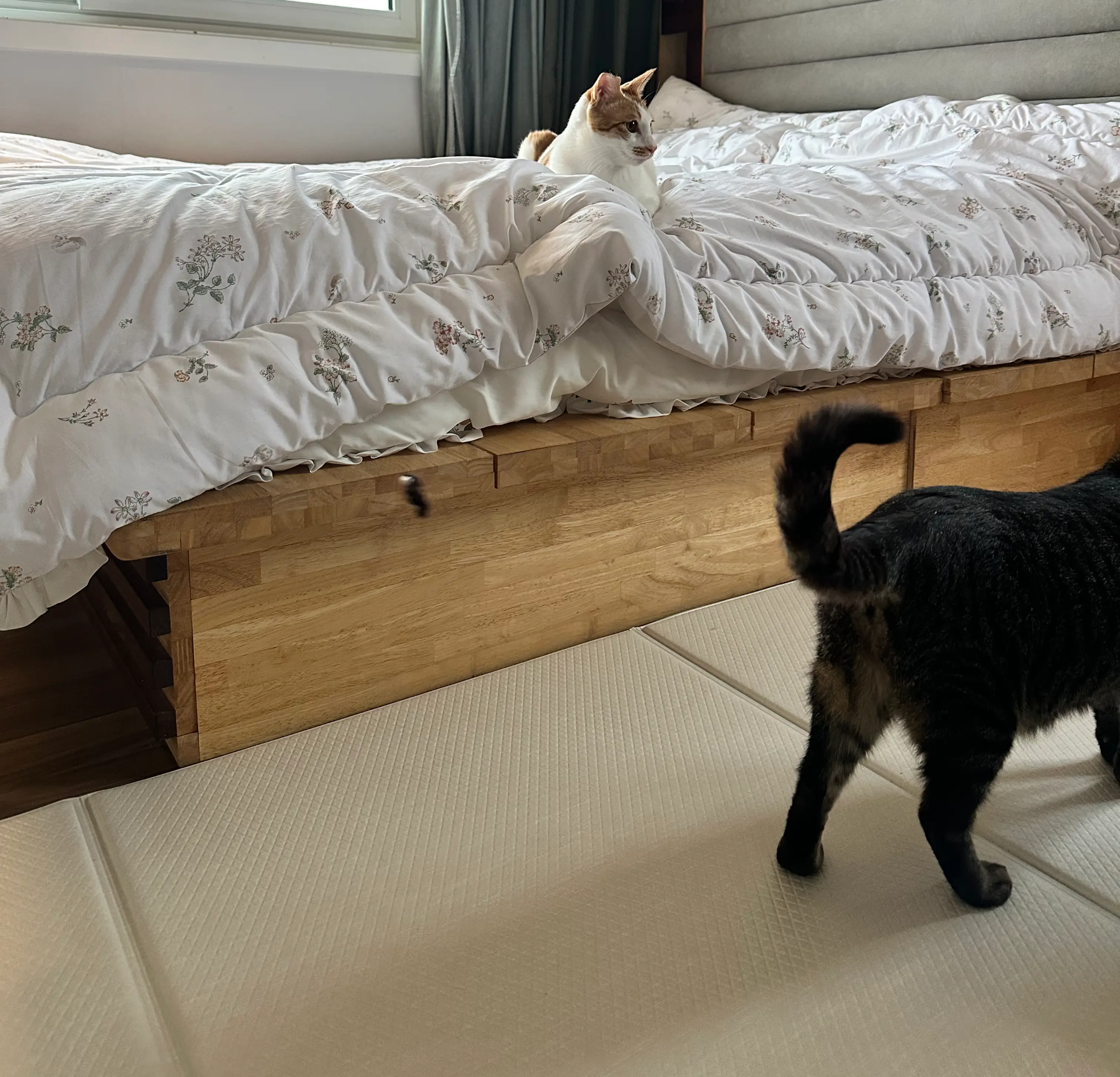 디팡 점프매트 덕분에 이제는 고양이들이 뛰는 모습을 걱정 없이 바라볼 수 있어요.