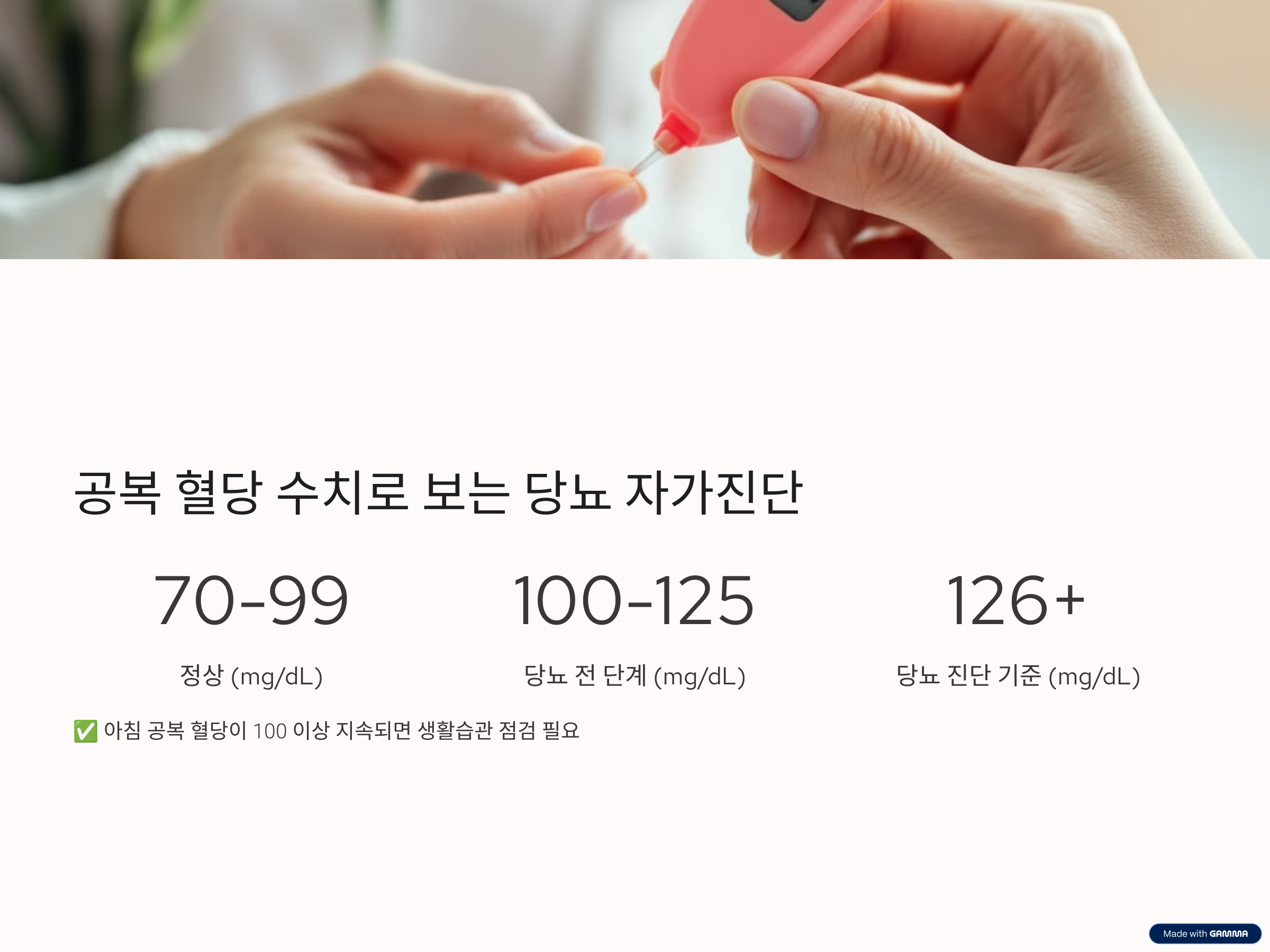 이렇게 일상에서 자신의 몸을 **‘기록하고 돌아보는 습관’**이 당뇨 관리의 시작이자 완성입니다.