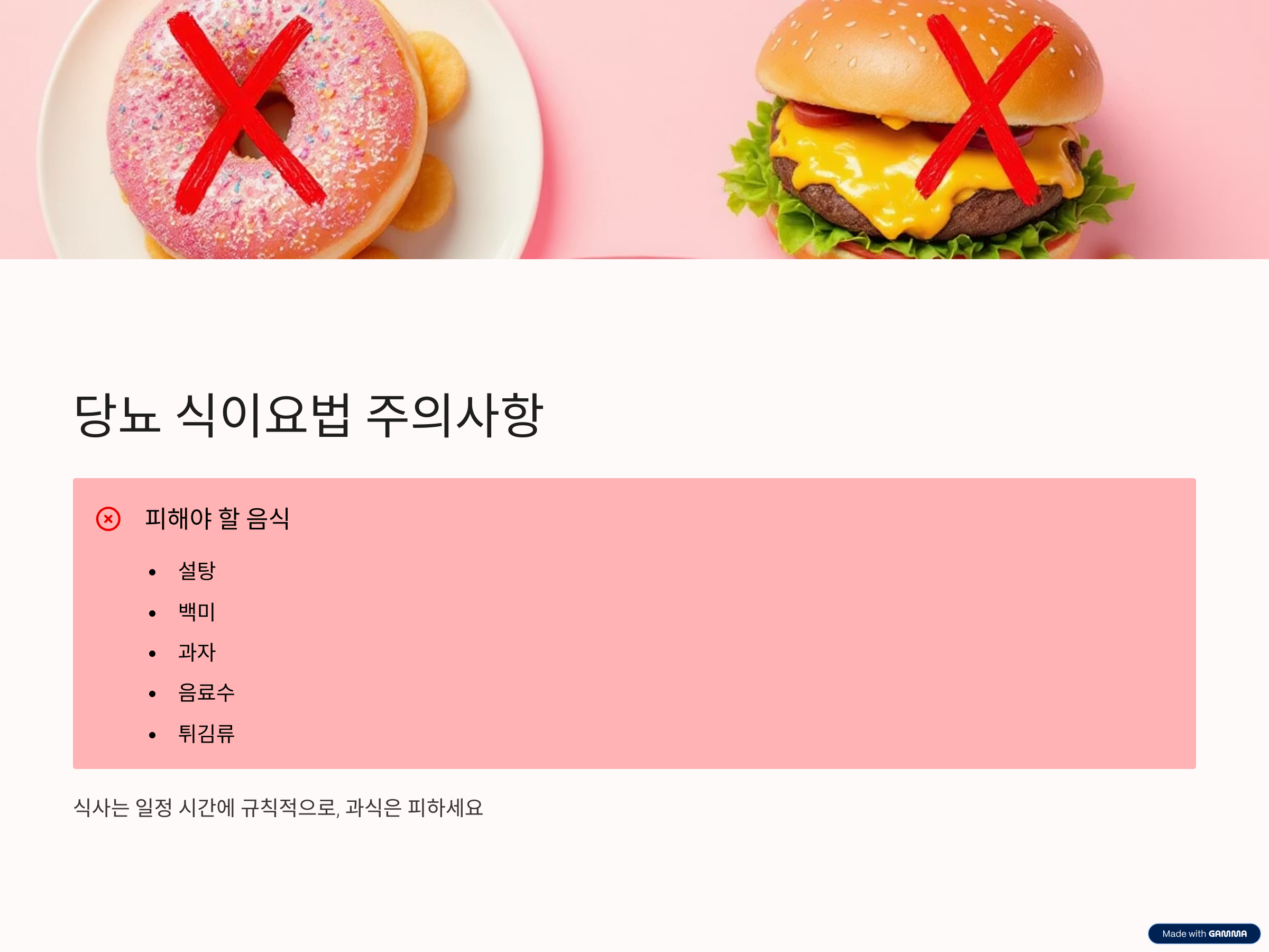 📌 주의: 설탕, 백미, 과자, 음료수, 튀김류는 되도록 피해야 합니다.
