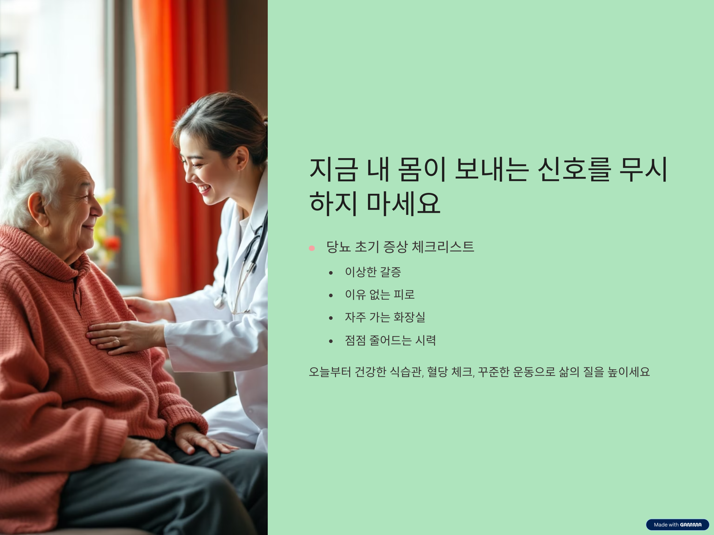 합병증은 한순간에 생기지 않지만, 방치하면 되돌릴 수 없는 결과를 만듭니다.